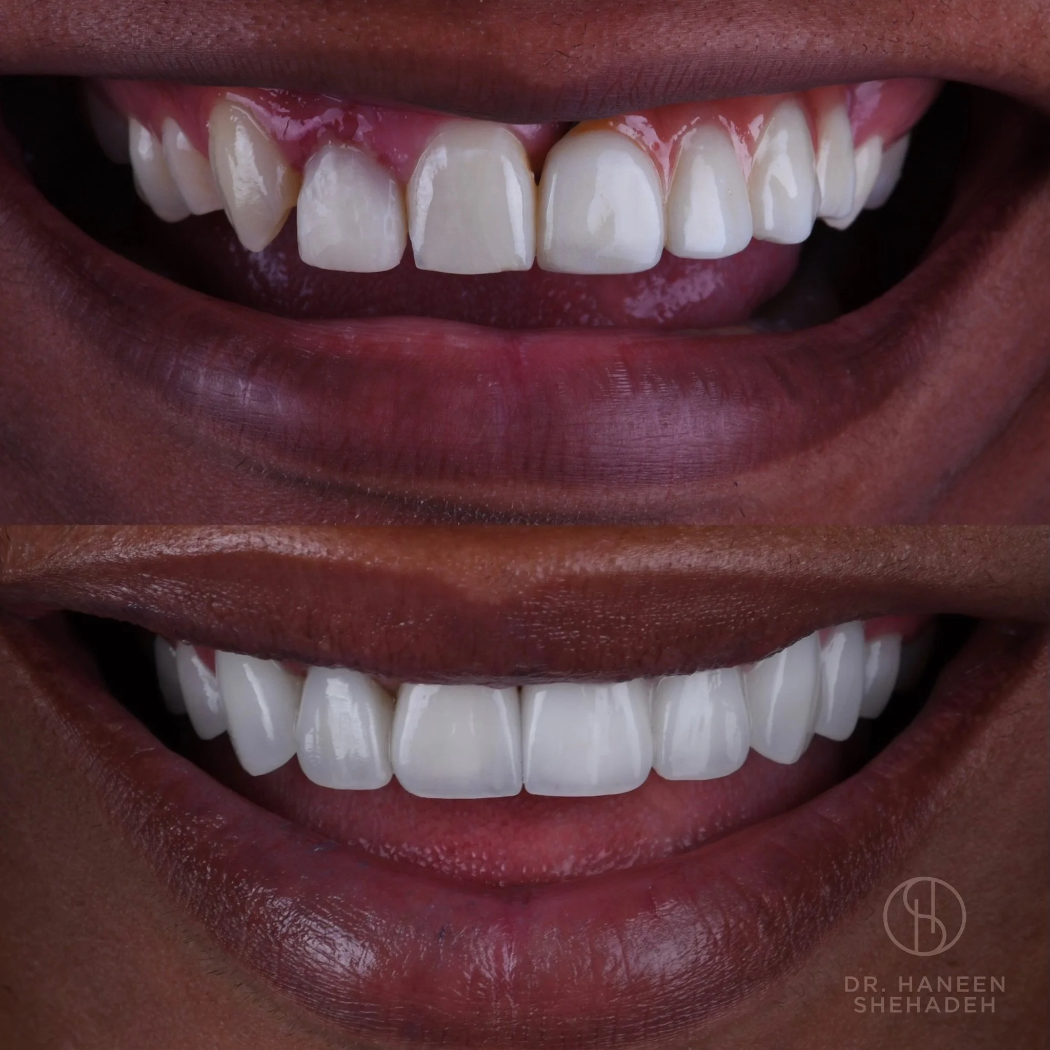 In a virtual consultation, this patient expressed to me her concerns about her ‘unnatural’ veneers that were done by a previous dentist. A blend of implant bridges, crowns, and porcelain veneers was used to reconstruct her entire smile.